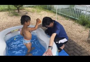 台風一過、蒸し暑い中、孫にプールを提供。人が服を着てようが着てなかろうが、そんなの関係ねえ❗️ 笑い的にはバッチリでした