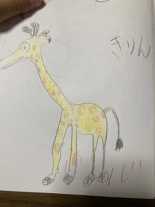 キリンです。なかなか上手く描けたのでアップします。セサミストリートに出てきそうなキリンです👍