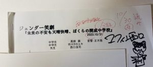 マフィ子の次は真逆のキャラの中学校の教師。今回ばかりは、自分は笑いよりも真面目に教師を演じて子供達にジェンダー含め将来の事を考えもらえるような芝居をやらないと🤔