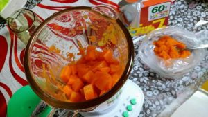 ミキサーに牛乳を入れて取れないにんじんをシェイク