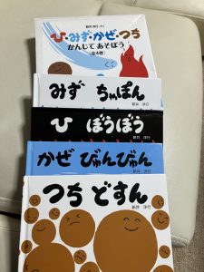 各ページには、「ドスン、ビュー、サー、チャポン、ぼー、めらめら、」などほとんどが擬音だけ🤔