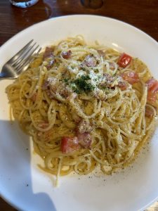パスタはカルボナーラかペペロンチーノの2択😁近くなのに存在を知らなかった「鈴鹿茶房」のカルボナーラ。