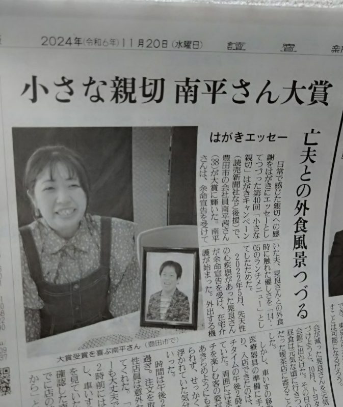 本日の読売新聞・三河版のページに掲載されました。もしよろしければコンビニなどで購入して読んでやってください。自分が南平さんなのか南平くんが南平さんなのかとにかく南平さん大賞という文字が自分のことじゃないみたいで嬉しかったです。 投稿者プロフィール 美麻あかね社長・座長 老婆、男役、司会、テレビレポーターと何でもこなす頼れる社長 最新の投稿 投稿者アーカイブ 笑劇の波乱万丈2025年12月13日旭交流館へ 笑劇の波乱万丈2025年12月12日いちごサンド クレンズ 笑劇の波乱万丈2025年12月12日SUBWAYが! 笑劇の波乱万丈2025年12月11日JALマーク フォローしてね @showgekiha Tweet Pocket Share on Tumblr 今月の公演情報 一般入場可能な出張公演を毎月動画でお知らせします。 YouTube 笑劇波チャンネル