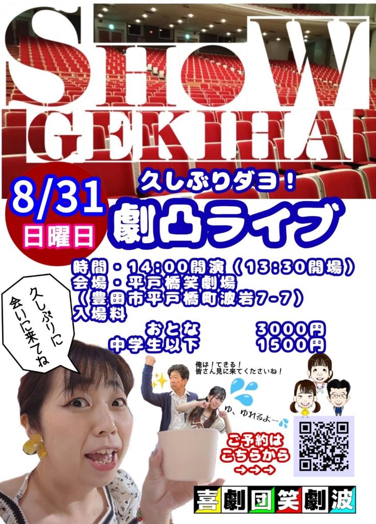 夏休み最後の日曜は笑劇波の劇凸ライブへ❗️