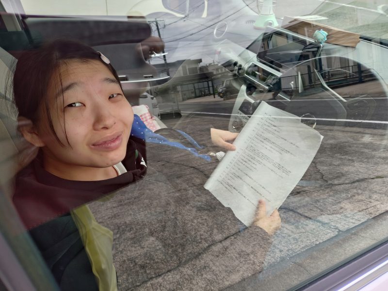 車の中で目をこすりながら