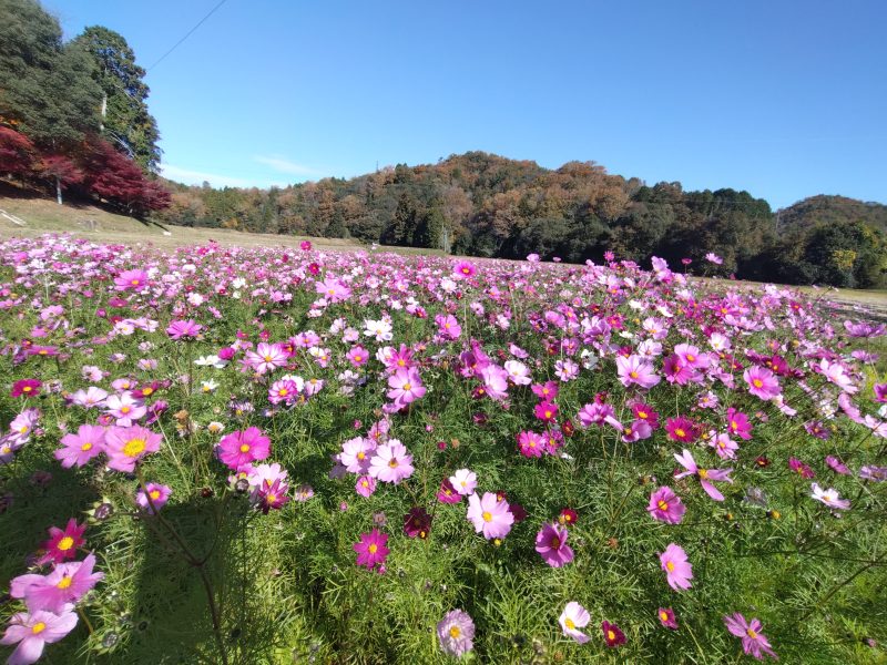 四季桜はどうかなぁーと小原に向けて走っていたら素敵なコスモス畑に遭遇!