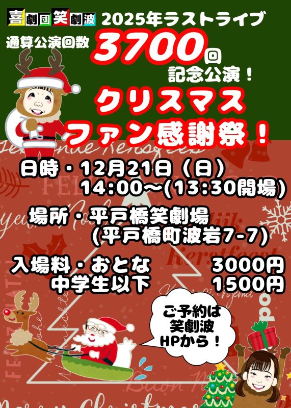 笑劇の波乱万丈2025年12月2日年末年始!気を付けて一般入場可能な出張公演を毎月動画でお知らせします。
