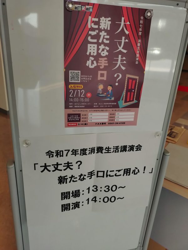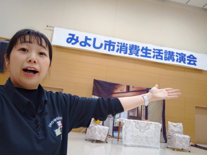 本日はおかよし交流センターにて消費生活トラブル未然防止講座! 最近は市から委託され分電盤のチェックに来ました!などとかたり、不安を煽り金銭を要求するケースが増えているのだとか! 知らない名前の電気会社や調査員証の提示がないなど不審な際は家に入れない! これが大切ですよ 投稿者プロフィール 美麻あかね社長・座長 老婆、男役、司会、テレビレポーターと何でもこなす頼れる社長 最新の投稿 投稿者アーカイブ 笑劇の波乱万丈2026年2月12日みよし市で 笑劇の波乱万丈2026年2月11日笑劇波公式ファンクラブ笑応会 会長と 笑劇の波乱万丈2026年2月10日メイクレッスン 笑劇の波乱万丈2026年2月8日選挙にいこう! フォローしてね @showgekiha Tweet Pocket Share on Tumblr 今月の公演情報 一般入場可能な出張公演を毎月動画でお知らせします。 YouTube 笑劇波チャンネル