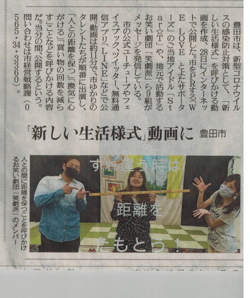 本日の読売新聞に掲載されました! 動画は豊田市のホームページで再生できます!ぜひご覧くださいね! 投稿者プロフィール 美麻あかね社長・座長 老婆、男役、司会、テレビレポーターと何でもこなす頼れる社長 最新の投稿 投稿者アーカイブ 笑劇の波乱万丈2025年12月13日旭交流館へ 笑劇の波乱万丈2025年12月12日いちごサンド クレンズ 笑劇の波乱万丈2025年12月12日SUBWAYが! 笑劇の波乱万丈2025年12月11日JALマーク フォローしてね @showgekiha Tweet Pocket Share on Tumblr 今月の公演情報 一般入場可能な出張公演を毎月動画でお知らせします。 YouTube 笑劇波チャンネル