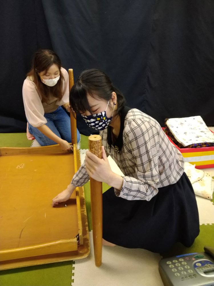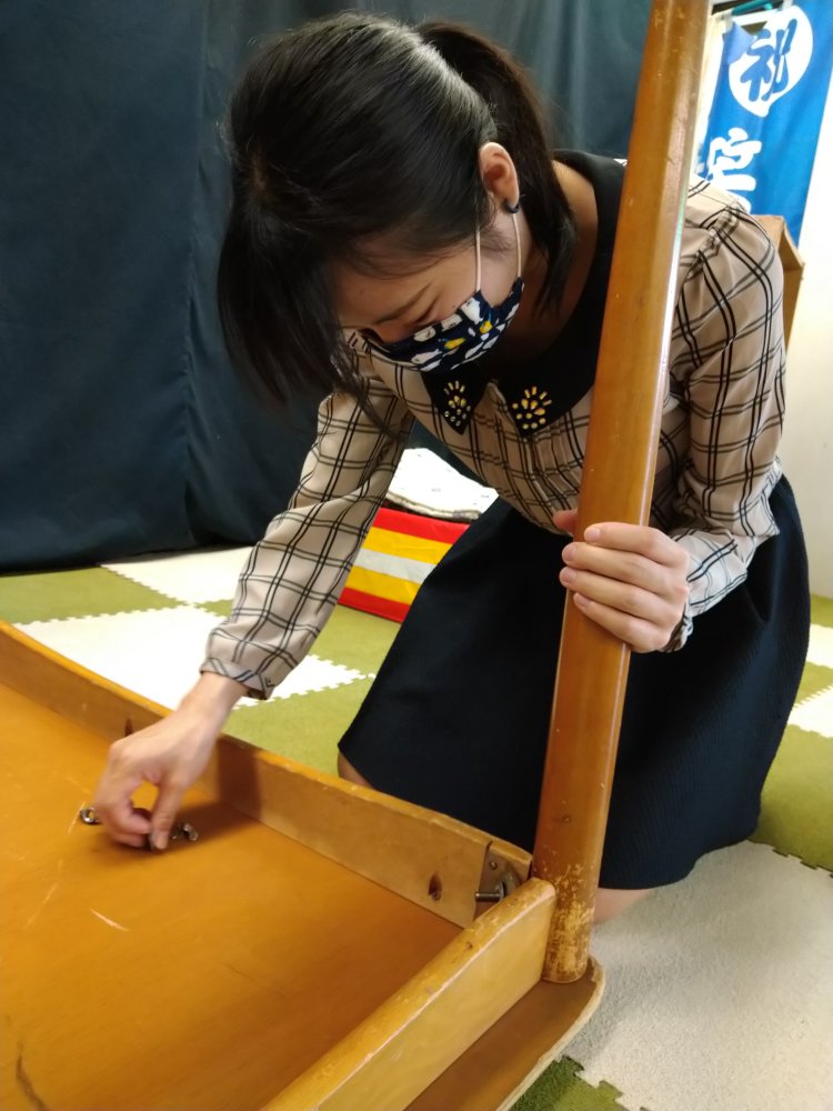 今日は新人みこちゃんに道具の組み立て方を伝授!
