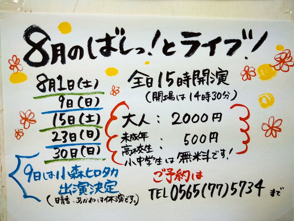 8月のライブ予定です〜
