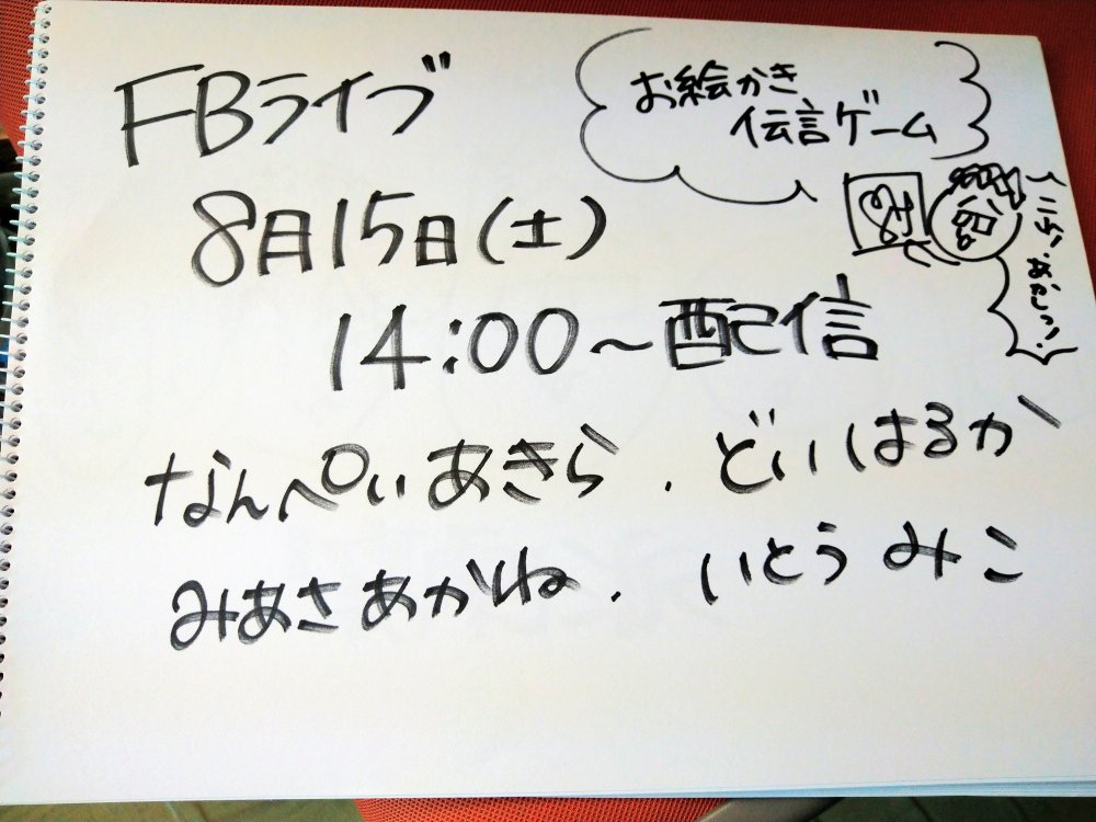 本日3時開演のライブは中止となりましたため、Facebookライブを開催いたします!