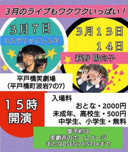 一般入場可能な出張公演を毎月動画でお知らせします。