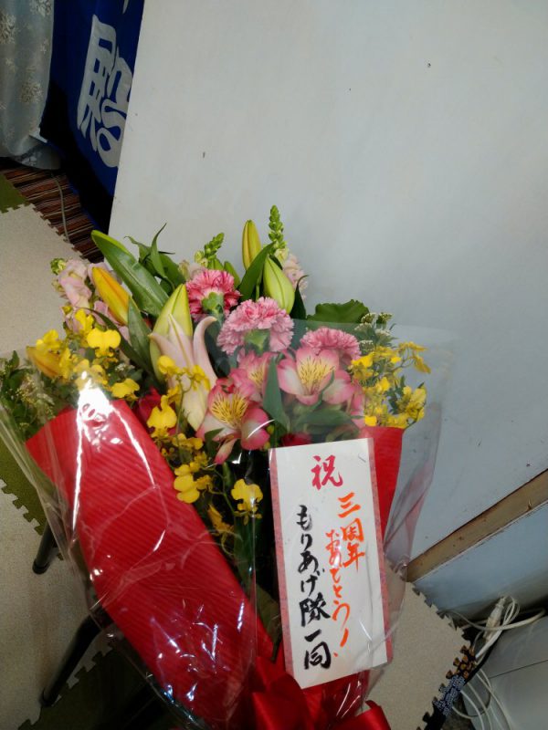 もりあげ隊の皆様から劇場3周年の花束をいただきました!うれしい!