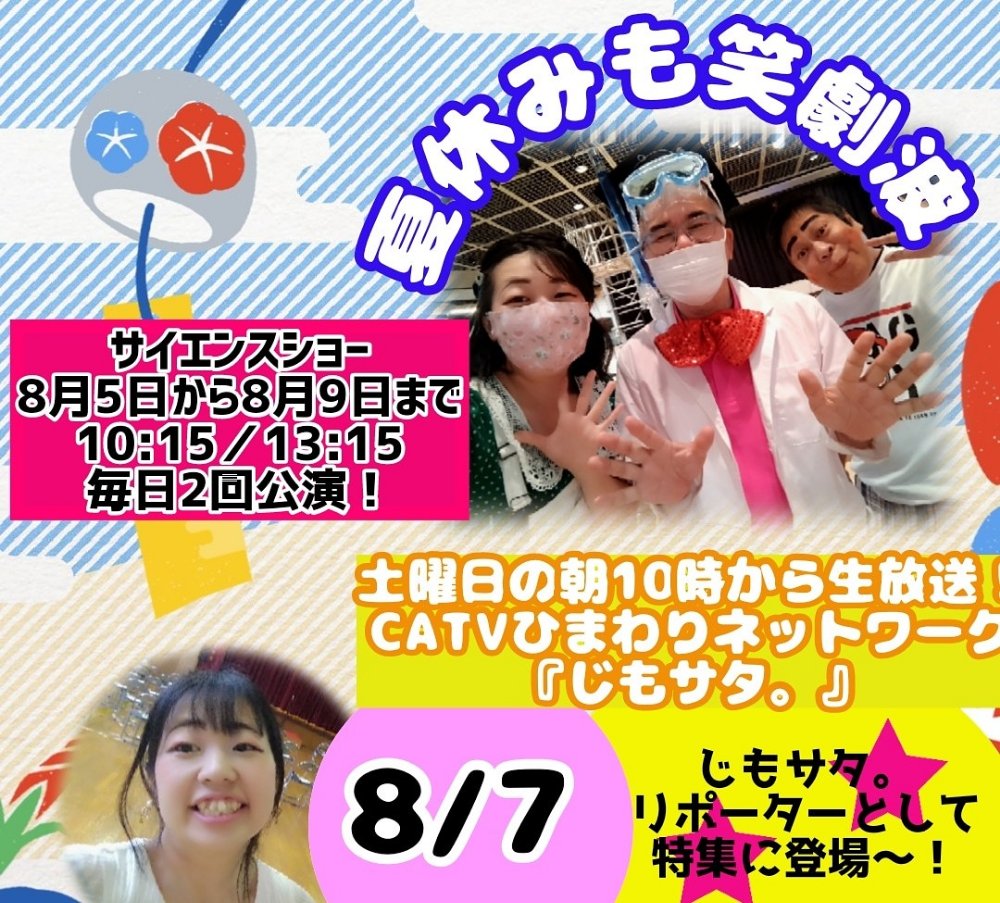 夏休みも笑劇波!よろしくね 投稿者プロフィール 美麻あかね社長・座長 老婆、男役、司会、テレビレポーターと何でもこなす頼れる社長 最新の投稿 投稿者アーカイブ 笑劇の波乱万丈2025年12月13日旭交流館へ 笑劇の波乱万丈2025年12月12日いちごサンド クレンズ 笑劇の波乱万丈2025年12月12日SUBWAYが! 笑劇の波乱万丈2025年12月11日JALマーク フォローしてね @showgekiha Tweet Pocket Share on Tumblr 今月の公演情報 一般入場可能な出張公演を毎月動画でお知らせします。 YouTube 笑劇波チャンネル