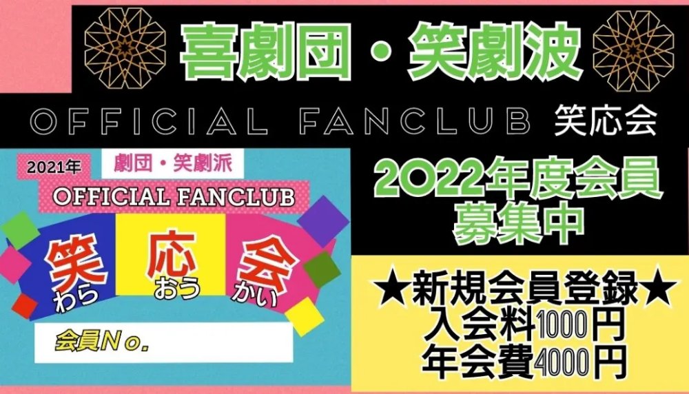 2021年4月より笑劇波ファンクラブ「笑応会」が始動しました。会報とメンバーズカードが届きます!またファンクラブ限定サイトもありますのでぜひこの機会にご入会ください…