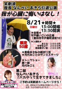 今日は小渡夢掛け風鈴に みなさまありがとうございました~ 投稿者プロフィール 美麻あかね社長・座長 老婆、男役、司会、テレビレポーターと何でもこなす頼れる社長 最新の投稿 投稿者アーカイブ 笑劇の波乱万丈2025年12月13日旭交流館へ 笑劇の波乱万丈2025年12月12日いちごサンド クレンズ 笑劇の波乱万丈2025年12月12日SUBWAYが! 笑劇の波乱万丈2025年12月11日JALマーク フォローしてね @showgekiha Tweet Pocket Share on Tumblr 今月の公演情報 一般入場可能な出張公演を毎月動画でお知らせします。 YouTube 笑劇波チャンネル