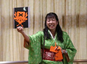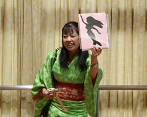 この衣装の着物は実家の母のもの。捨てようとしていた着物を紙切芸のときにきるから頂戴!と送ってもらいました。