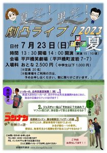 クリスマスファン感謝祭 クリスマスファン感謝祭 を2025年12月21日(日)の午後2時から平戸橋笑劇場で開催します。 入場料 (税込み) 大 人 3000円 中学生以下 1500円 スリッパをご用意下さい 中学生・ […]