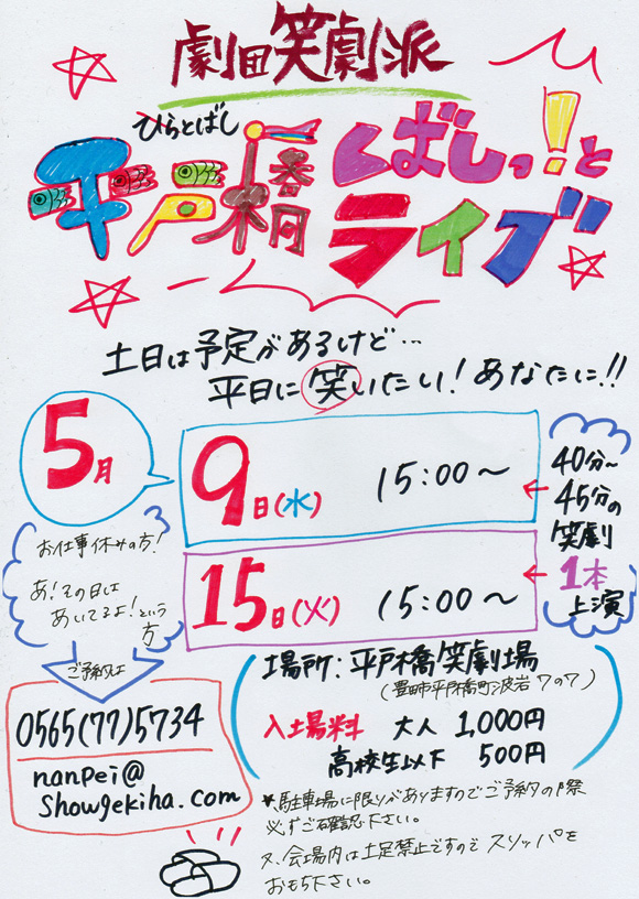 笑劇1本の上演ですが、各回、すべて内容を変えてお待ちしております\(^.^)/
