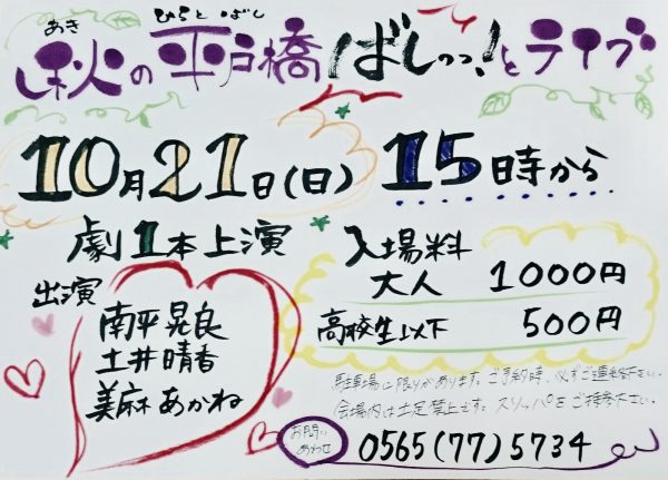 10月21日(日)午後3時より、平戸橋笑劇場で開催します