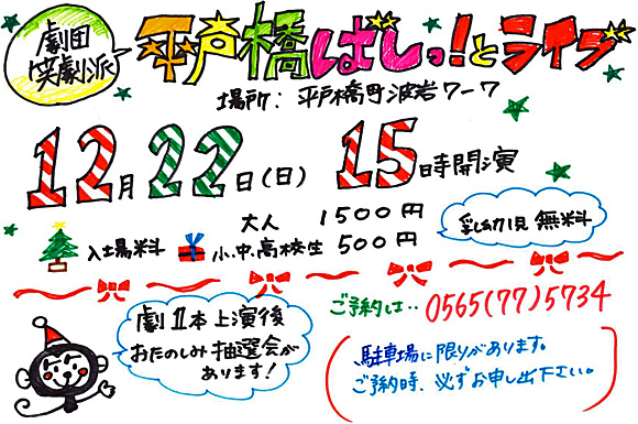 12月22日(日) の午後3時 に平戸橋笑劇場で開催します。