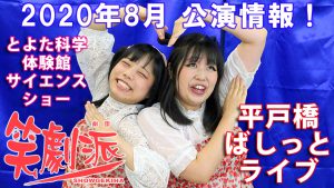 平戸橋ばしっとライブ(創立22周年記念の90分ライブ)を9月12日(土)、13日(日)、27日(日) の午後3時 (開場 午後2時30分) に平戸橋笑劇場で開催します。1回の定員は通常の半分以下の15名とします。ご予約はお早めに。