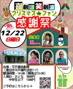 平戸橋笑劇場 7周年記念 劇凸ライブ 平戸橋笑劇場 7周年記念 劇凸ライブ を2025年4月20日(日)の午後2時から平戸橋笑劇場で開催します。 入場料 (税込み) 大 人 3000円 中学生以下 1500円 1.ス […]
