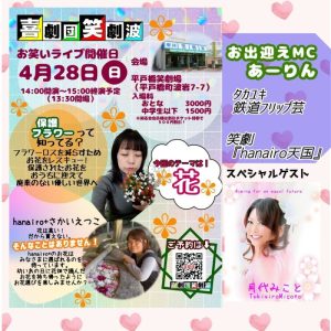 昨日はライブでした! hanairo+に感動〜✨✨ 今日はライブ後、お花を買って帰れるという『フラワーロスを体感ライブ』でした。 棄てられてしまう花たち。それを救おうと立ち上がった悦子さん。 今回は劇の設定が天国の花屋会 […]